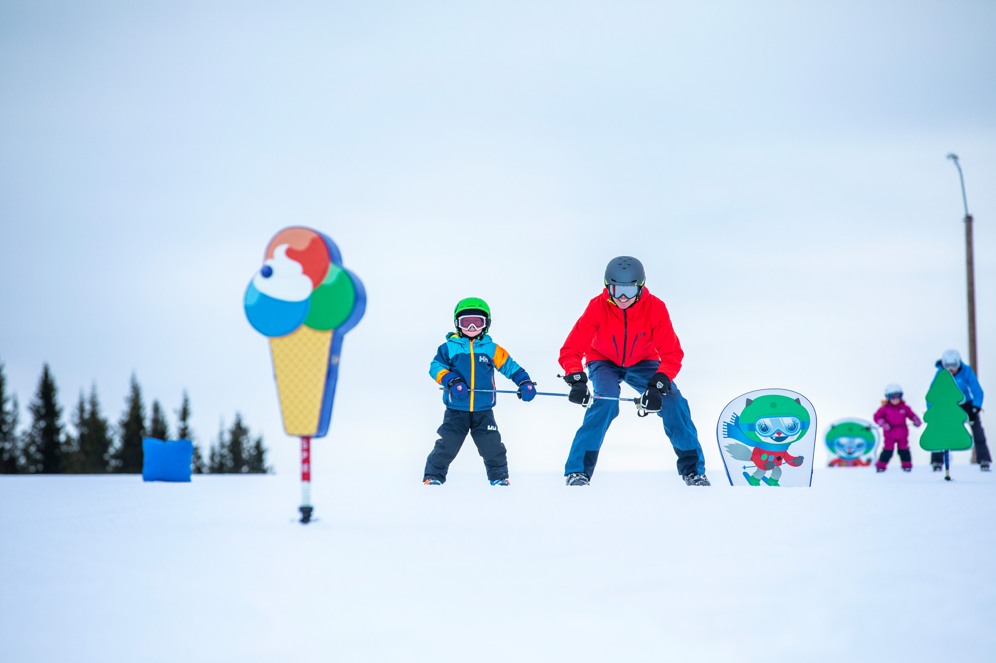 The three familyareas are located by our 3 main areas, one by the bottom station, one at the top of the gondola and one at the top near Gaiastova. All three with unique skirelated themes, and a dedicated area to enjoy your own lunch with a free bbq. If you go skiing in all three areas you'll get one button for each area and a cool gift!