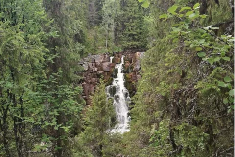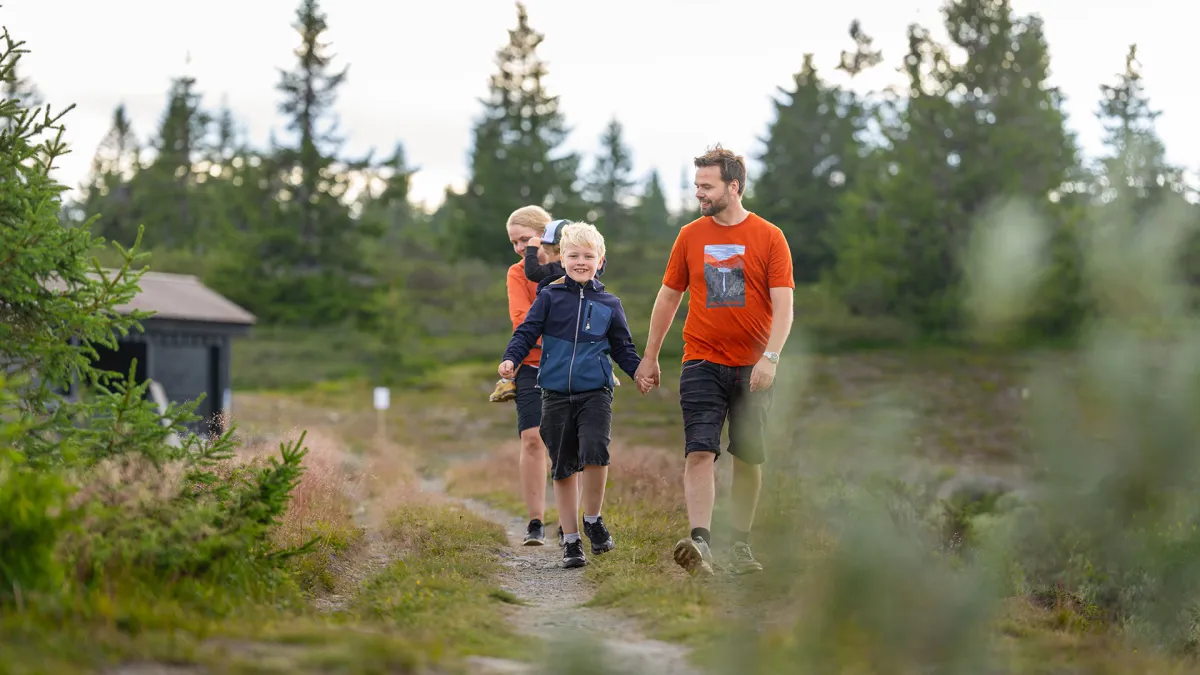 1,5 km hike in easy terrain from Mosetertoppen to Fossen. Great hike for families where you can tell the children stories along the way of what you might find behind the waterfall.