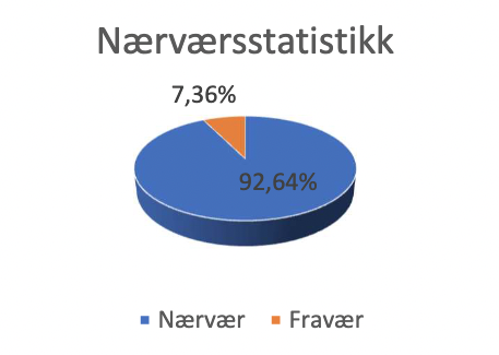 Fraværsstatistikk utarbeides fortløpende. Det er registrert forholdsmessig noe høyere andel sykefravær på mannlige enn kvinnelig ansatte både i forhold til egen sykdom og sykt barn. Utav en gjennomsnittlig arbeidsstyrke på 139 personer i vintersesongen har det blitt registrert fravær på 59 personer.