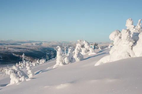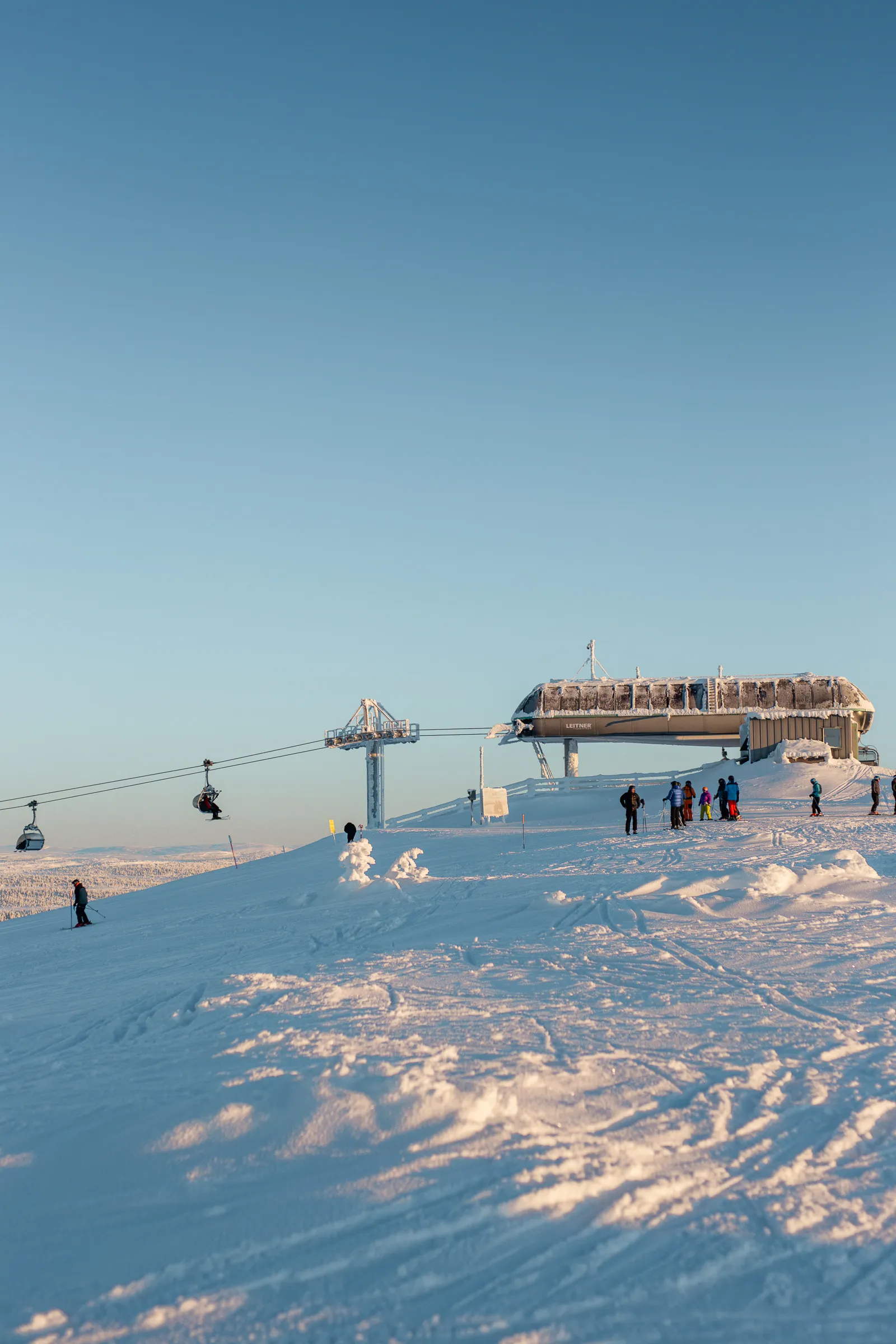 The gondola whisks you quickly and comfortably up to Favn and the gondola top and to two of our family areas. Here you will also find the Kids ‘’Frontyard’’ terrain park consisting of some small jumps and slalom gates designed for the smallest members of the family. There is also a small cabin for everyone to use, the perfect place to eat your packed lunch and take a break from the cold.Getting back to the top of the slope is easy, with the Magic Carpet lift you simply step on and off.